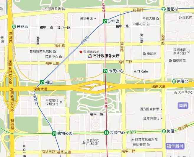 深圳市行政服务大厅位于福田区福中三路市民中心B区南侧首层,分为东厅和西厅